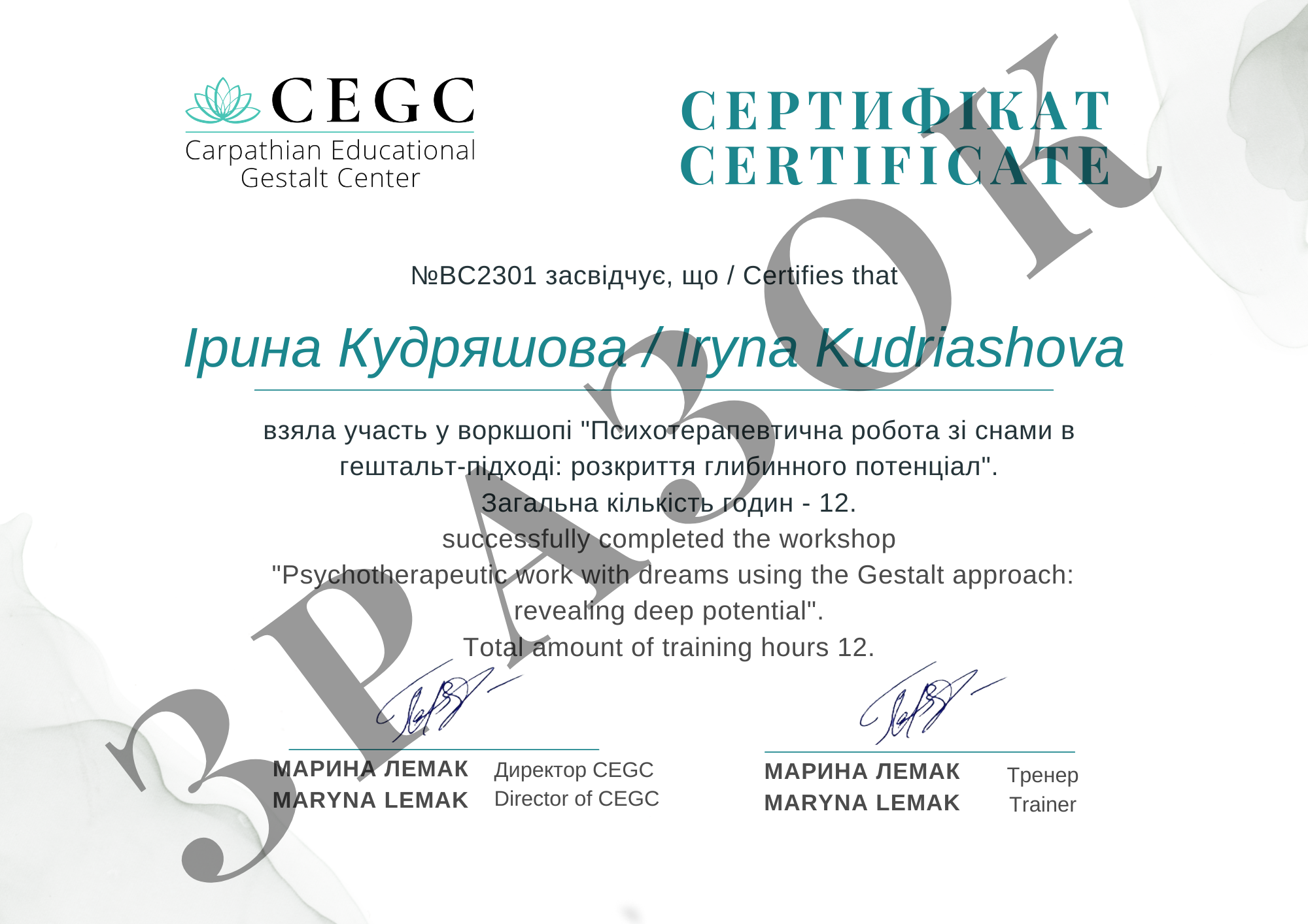 Воркшоп "Робота зі сновидіннями у гештальт-підході: розкриття глибинного потенціалу"
