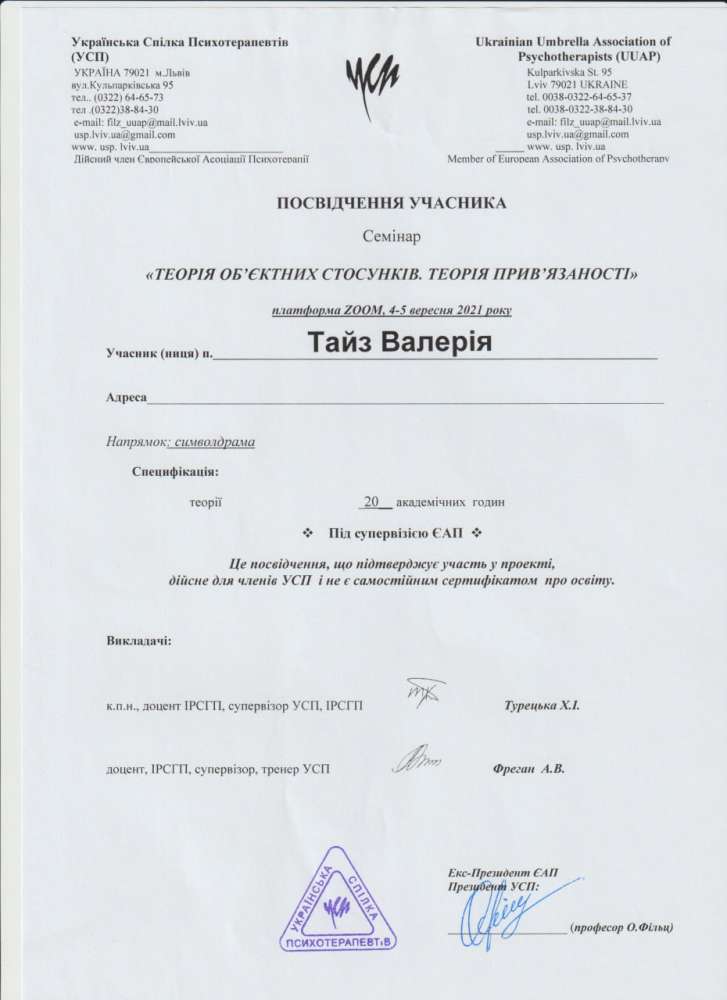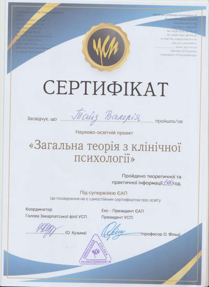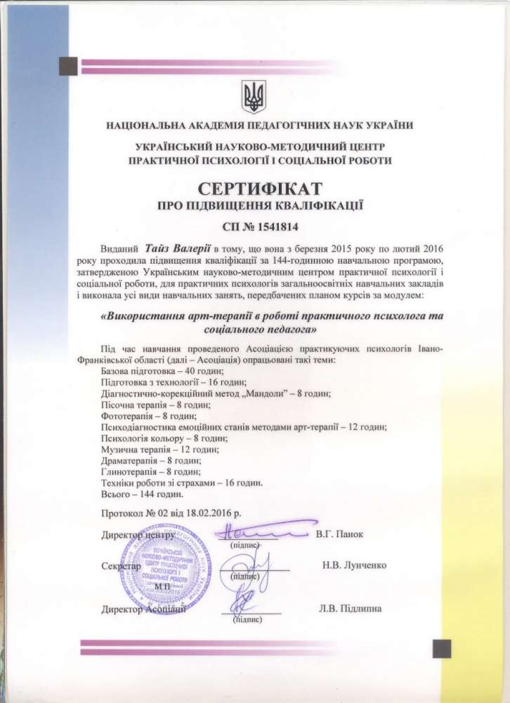 PROFESSIONAL DEVELOPMENT, TRAINING OF PSYCHOLOGISTS AND PSYCHOTHERAPISTS