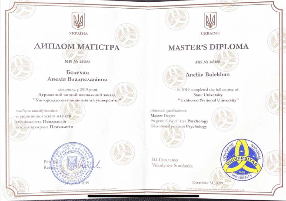 - Допомога українцям в Чехії, Психолог в охороні здоров’я працювала в інституті психічного здоровʼя в Чехії NUDZ, тривалість роботи 1,5 року.