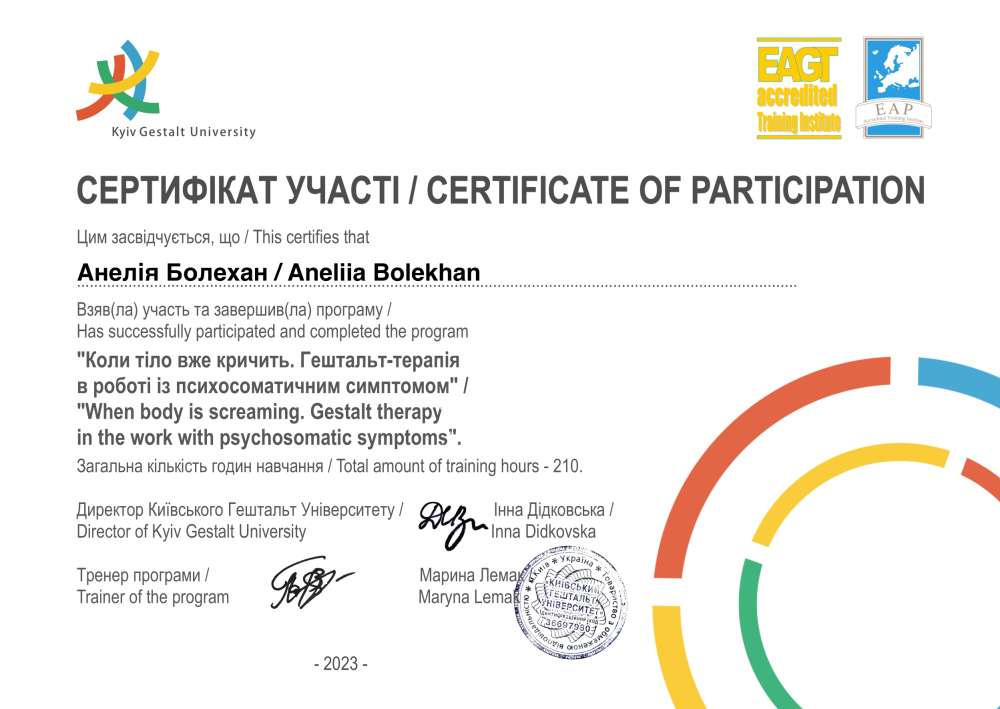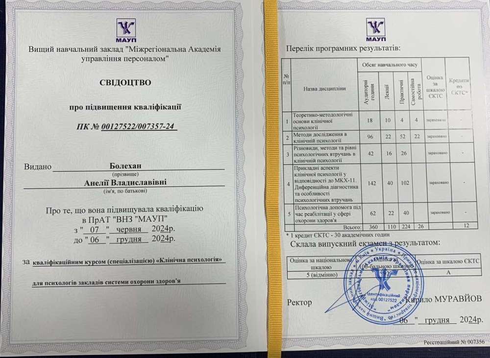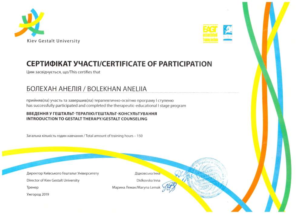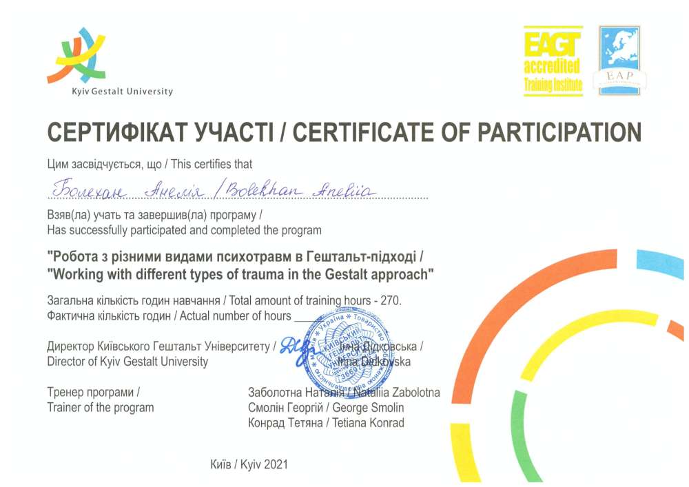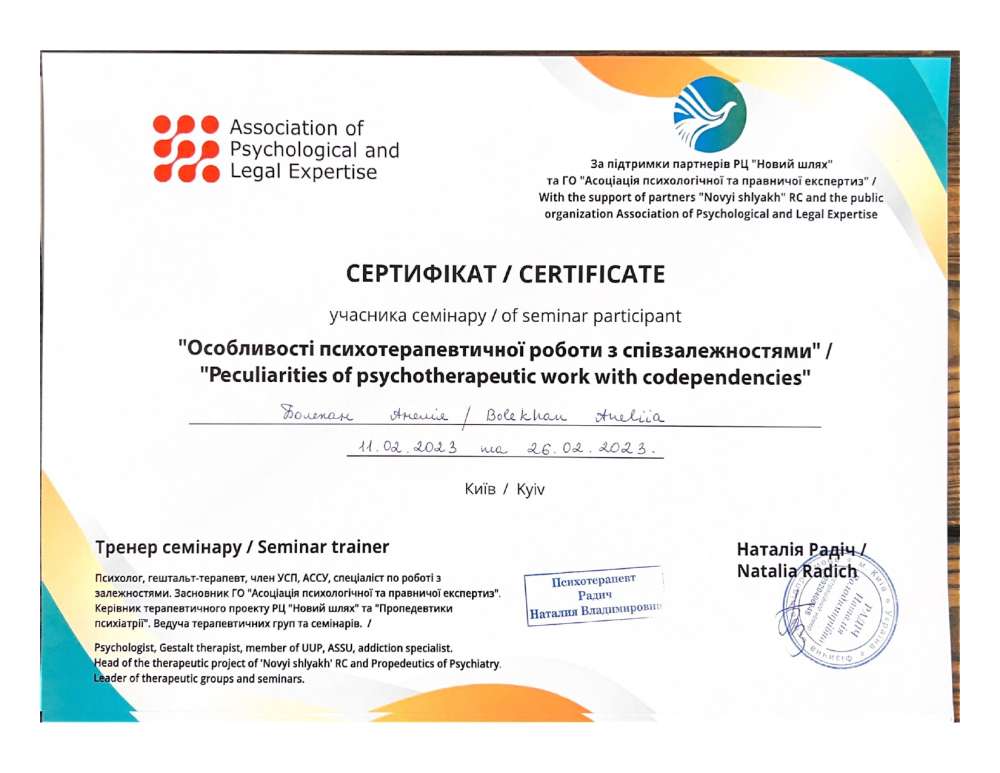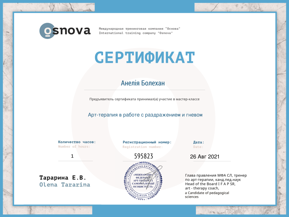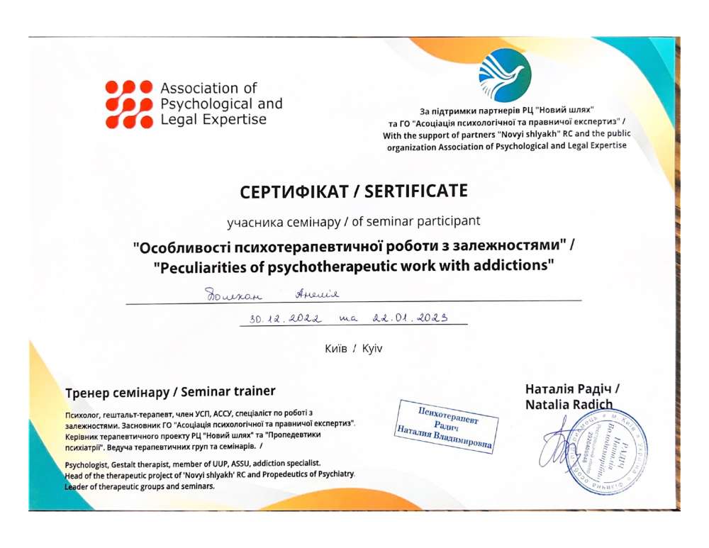 - Вивчала «теорію і практику роботи з метафоричними асоціативними картами»