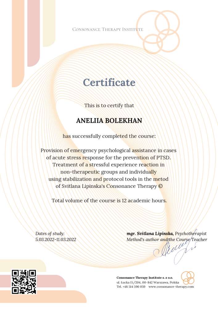 - Робота з гострою стресовою реакцією для запобігання ПТСР від Consonance Therapy Institute sp. z o.o. Polska.