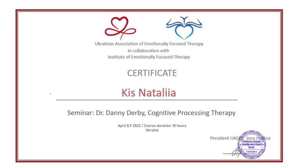 "Когнітивно-процесуальна терапія для фахівців, що працюють із ВПО та іншими вразливими групами". Робота з ПТСР. - 2022 р.