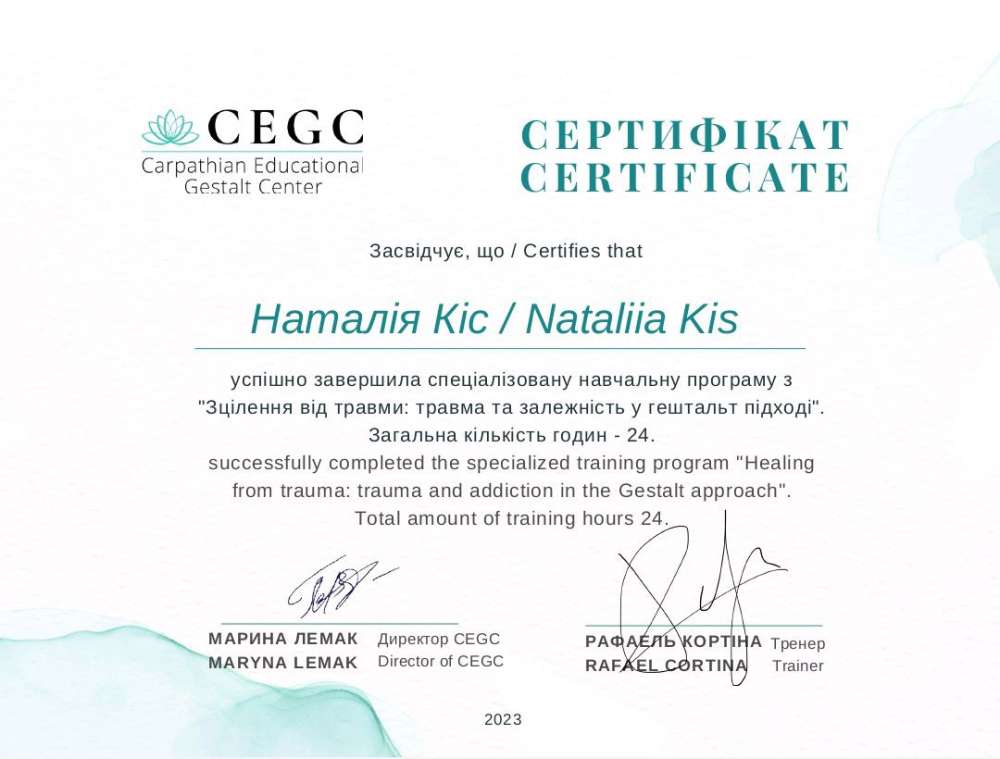 "Зцілення від травми: травма та залежність в гештальт підході". CEGC- 2023 р.