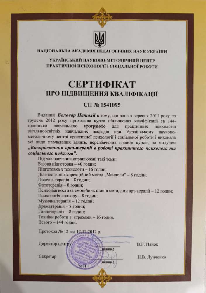 "Використання арт-терапії в роботі практичного психолога та соціального педагога". НАПНУ - 2012 р.