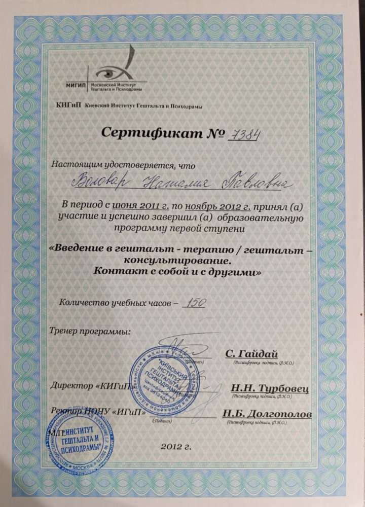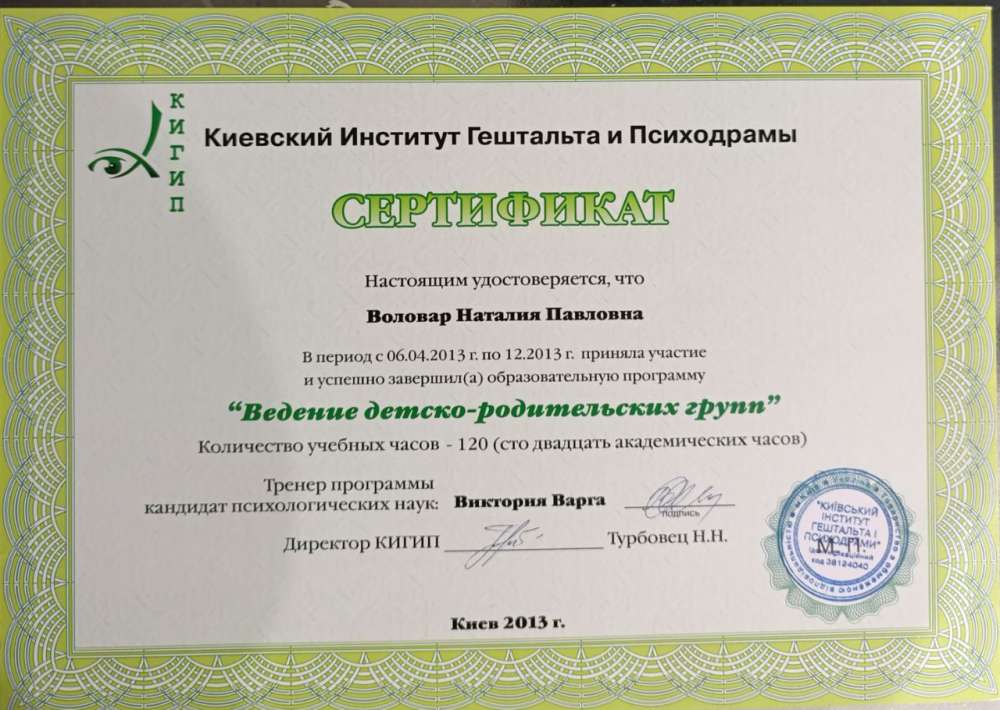 "Гештальт-терапія". КІГіП – з 02.2013 по 12.2016 р.
